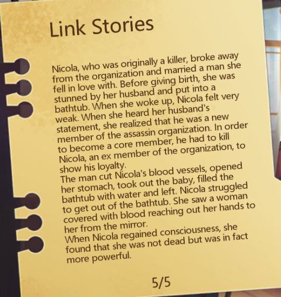 If you are interested in reading the lore behind Nicola as a character and how she came to be the way she is, you can check out the story below. It is unlocked by increasing your intimacy level with her.