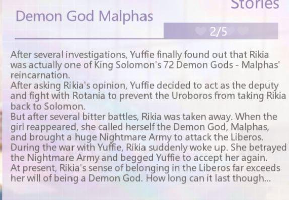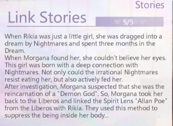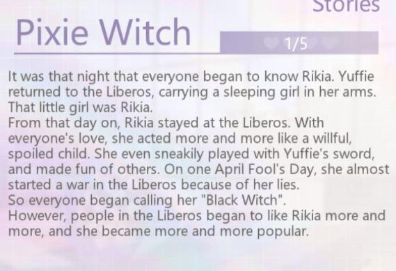 If you are interested in reading the lore behind Rikia as a character and how she came to be the way she is, you can check out the story below. It is unlocked by increasing your intimacy level with her.