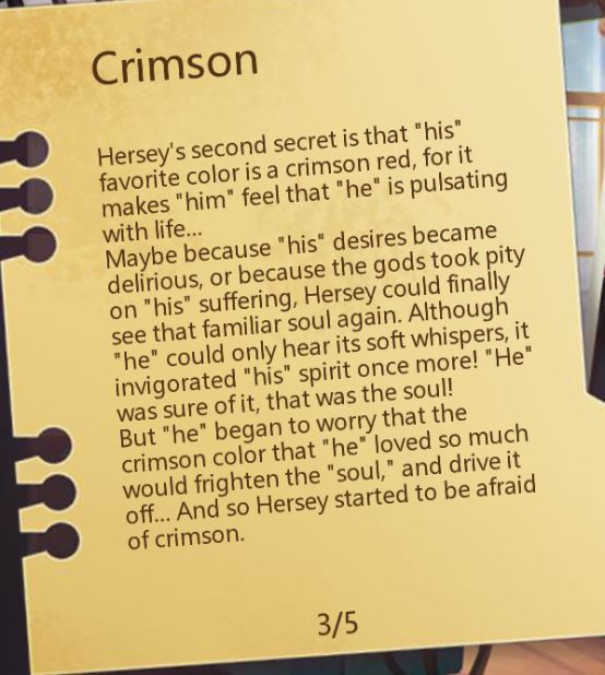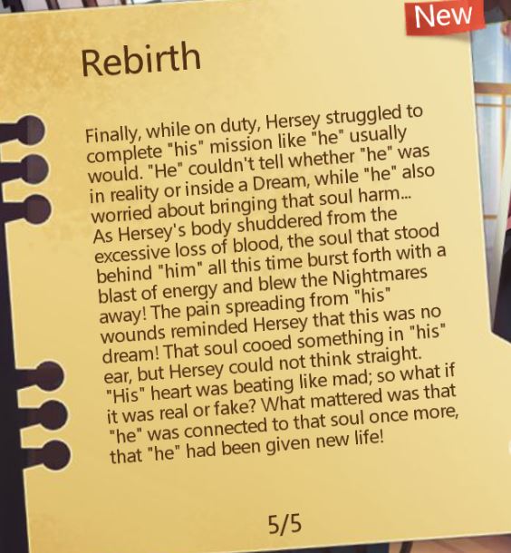 Up until this story, it was almost unclear if Hersey was a “him” or a “her”. Although the main story points at Hersey being a “him”, this makes it very clear that indeed it is like that. However, in the description of the normal SSR Hersey, the term “her” is used.