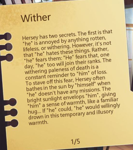 If you are interested in reading the lore behind Silhouette – Hersey as a character and how they came to be the way they are, you can check out the story below. It is unlocked by increasing your intimacy level with them.